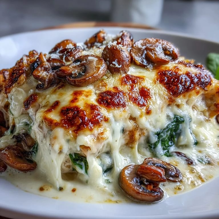- Spoon all that sautéed spinach and mushroom mixture over the chicken in an even layer