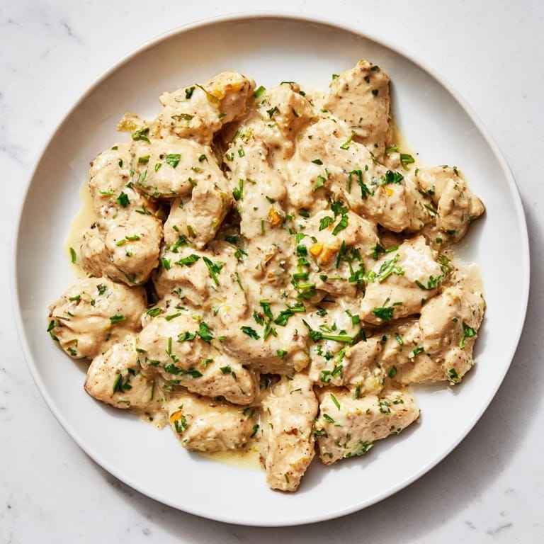 Pin Tender chicken breasts in a lighter, creamy tarragon sauce, balanced with fresh herbs and a touch of lemon for a guilt-free yet indulgent meal.