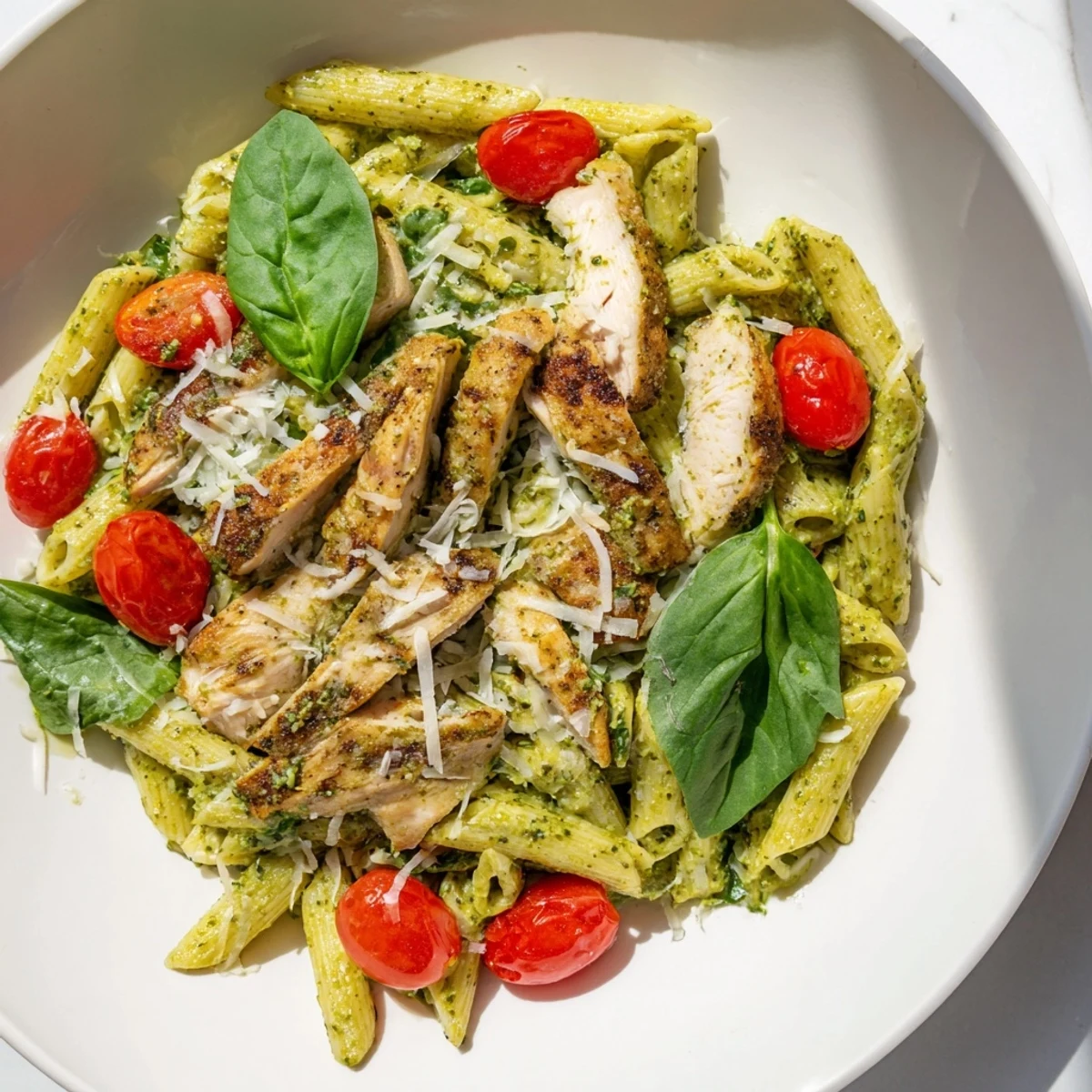 There's a magic in how simple ingredients transform through a little heat and timing. The pesto brings umami depth, the charred chicken brings richness, the fresh spinach brings a clean brightness, and somehow it all balances into something greater than the sum of its parts. It's the kind of dish that proves you don't need complicated technique to create something truly satisfying.