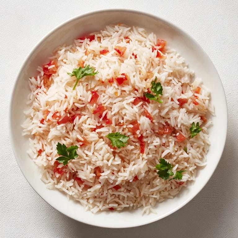 Pin A simple, comforting one-pan meal of tender rice simmered with juicy tomatoes, onion, and a hint of garlic—perfect for busy weeknights.