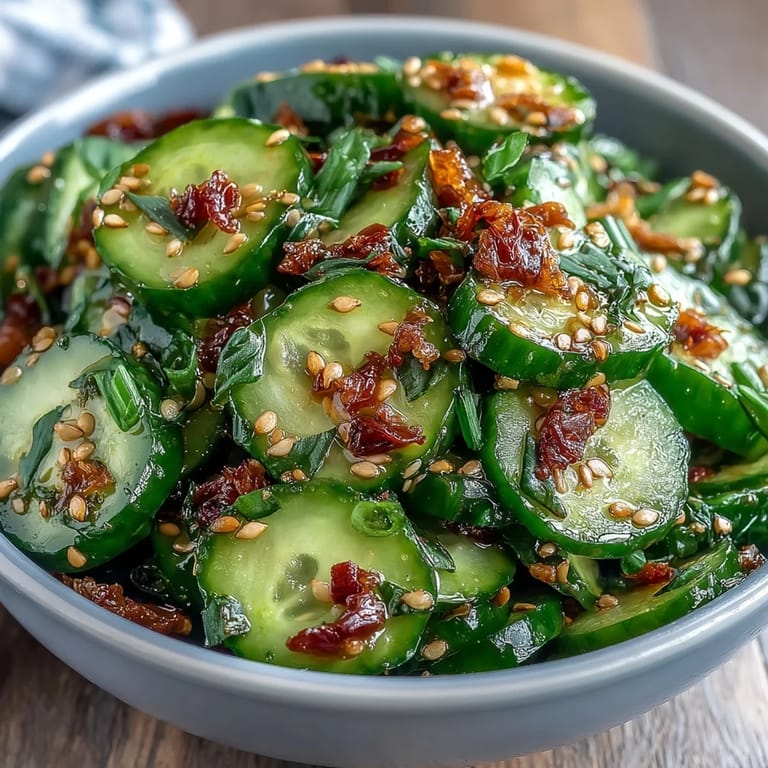 Pin My neighbor brought over a container of this cucumber salad on a sweltering summer afternoon, and I remember being genuinely shocked at how something so simple could taste so alive. The sesame oil hit first, then the bright rice vinegar brightness cut through it, and I found myself asking for the recipe before I'd even finished my first bite. It became my go-to when I needed something that felt both comforting and exciting, especially on days when the kitchen felt too hot to turn on the stove.