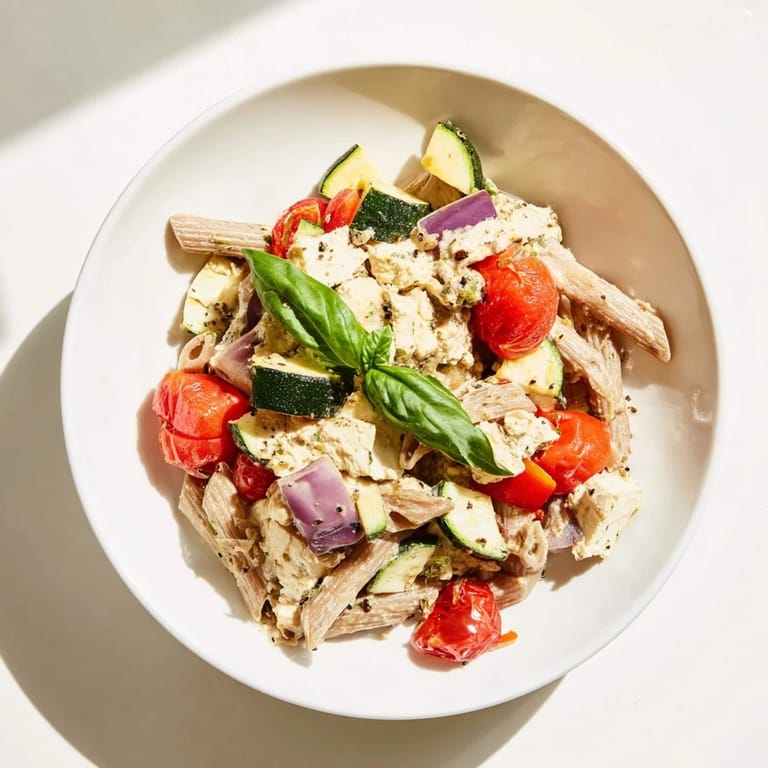 Whole-grain pasta has a rougher texture than refined pasta, which means sauce clings to it more effectively instead of sliding right off. There's also a subtle nuttiness that pairs beautifully with roasted vegetables and salty feta in a way that white pasta doesn't quite manage. If you've only ever made this with regular pasta, switching to whole grain will feel like a small revelation—you'll notice the sauce stays on every bite instead of settling at the bottom of your bowl.