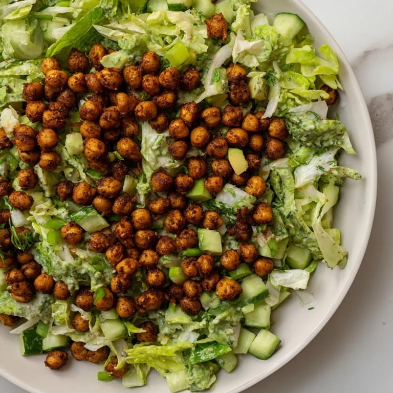 Roasted chickpeas are good, but air fried chickpeas are a revelation. They get shatteringly crisp in a way that oven roasting sometimes can't achieve, and they stay that way longer. It's the texture contrast that makes this salad feel like something special instead of just another bowl of greens.