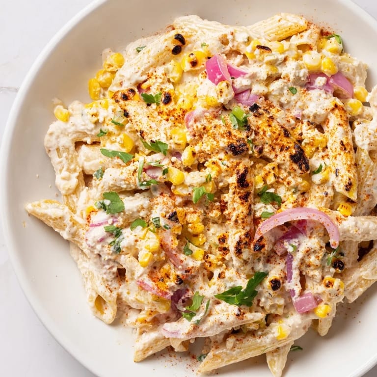 Mexican street corn—elote—is one of those perfect summer foods: charred corn, creamy mayo, sharp cheese, and lime. It's portable, it's a snack, it's an experience. Converting it to a pasta salad was probably inevitable, but it works because you're keeping all those essential flavors and just changing the vehicle. The pasta becomes the blank canvas that lets the corn and spices shine, rather than overshadowing them.