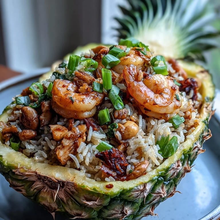Pin That unmistakable sizzle of rice hitting a hot wok is the sound that gets me every time – especially when I'm making Pineapple Fried Rice. The first time this recipe landed in my kitchen was on a muggy summer night when a friend showed up with an enormous pineapple and a request to make something "special" for dinner. We didn’t know it yet, but hollowing out fruit and stuffing it with vibrant, steamy rice was about to become our new favorite shared food adventure. To this day, it’s the dish I turn to when I want to add a little theatrical flair to a weeknight or when I’m itching for tropical flavors that transport me far from home. The way the sweet pineapple aroma hangs in the air as you stir everything together is pure kitchen happiness.