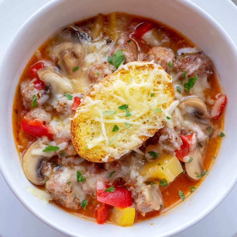 This soup was an instant hit in my kitchen—the cheesy topping and rich tomato broth remind me of pizza get-togethers, but with the homey feel of a classic pot pie. Everyone always comes back for seconds.