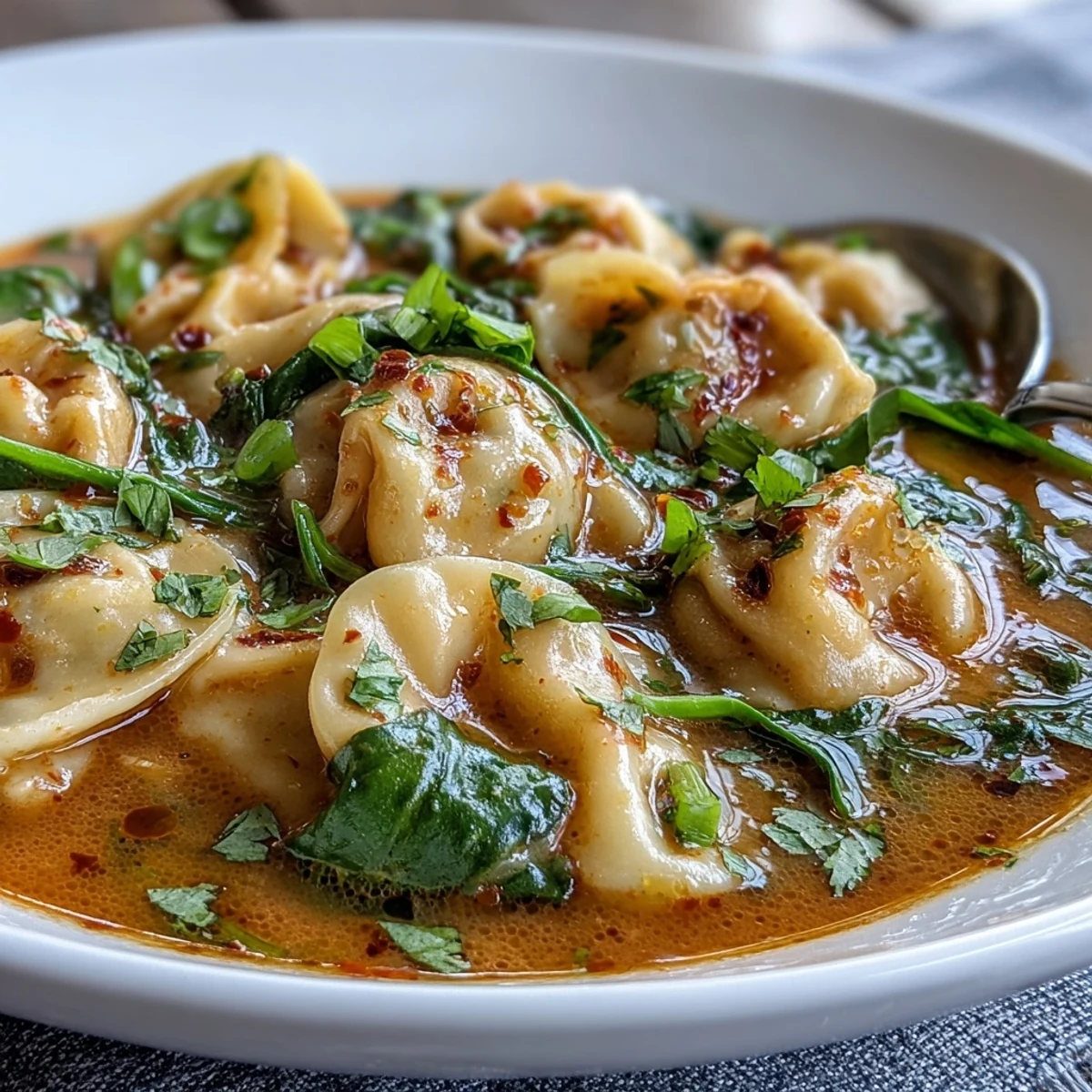 Pin I discovered this soup on a grey afternoon when my freezer had nothing but wontons and my pantry was screaming for purpose. Red curry paste caught my eye—bold, aromatic, promising—and somehow it struck me that coconut milk and those plump wontons might actually dance together beautifully. Twenty-five minutes later, I was ladling something unexpectedly vibrant into a bowl, steam carrying that distinctive curry warmth straight to my face. It became one of those recipes I now make whenever I need comfort without the fuss.