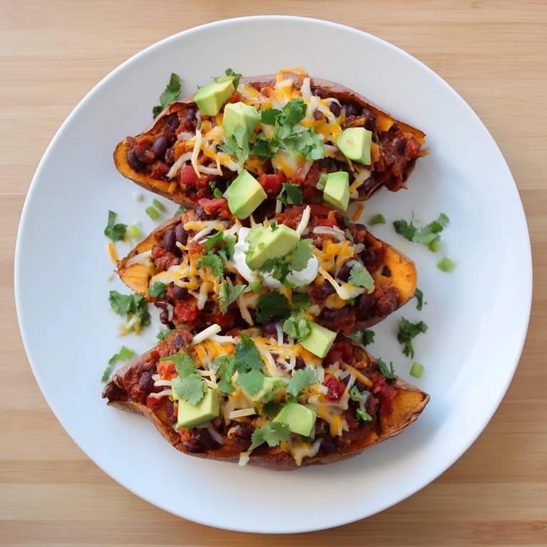Pin Hearty sweet potatoes are baked until tender, then filled with a robust, bean-packed chili for a flavorful, wholesome weeknight meal that requires minimal hands-on prep.